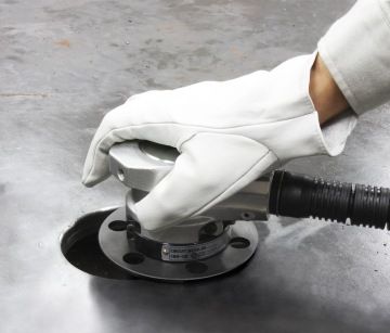 Pneumatic deburring tool for straight and curved edges, suitable for thin sheets from 1.5 mm. Operates on a milling principle with a rotary head and a small guide plate, allowing easy use in confined spaces. The energy-efficient motor provides high performance with low air consumption. Produces a smooth finish, eliminating the need for further processing.