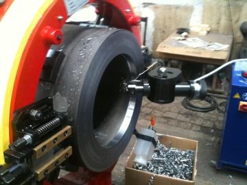 SOLIDRING is a very powerful machine with external clamping, it allows to separate and make a bevel on a pipe with a wall thickness up to 100 mm. The machine concept is based on a circular frame in which two knife holders move.