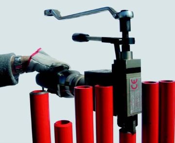 Featuring a unique body and head design with a width of just 40 mm, the beveller can be easily used in membrane walls and windows with limited clearance of slightly over 40 mm. The ratchet clamping elements further facilitate work on membrane walls by allowing operation from one side. The machine is clamped from inside the pipe, enabling simultaneous external and internal beveling and face alignment. With the standard clamping shaft, it can be clamped in pipes ranging from 20 to 39 mm in internal diameter, while the use of a reduced clamping shaft extends its clamping range to pipes with an internal diameter of 12.5 mm or more.