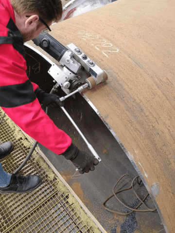 Swifturn is a pipe and plate beveling machine, ideal for very fast and precise bevelling. It is available in two versions: one for pipes with diameters from 254 mm to 813 mm, and the other for larger pipes from 610 mm and above, including flat sheets. Swifturn allows for quick setup within 3 minutes and can bevel pipes at a speed of up to 1 meter per minute. Thanks to its easy and safe operation, it is the ideal solution for a wide range of tasks. The machine offers a continuously adjustable bevel angle and is equipped with a powerful motor, ensuring efficient and precise bevelling.