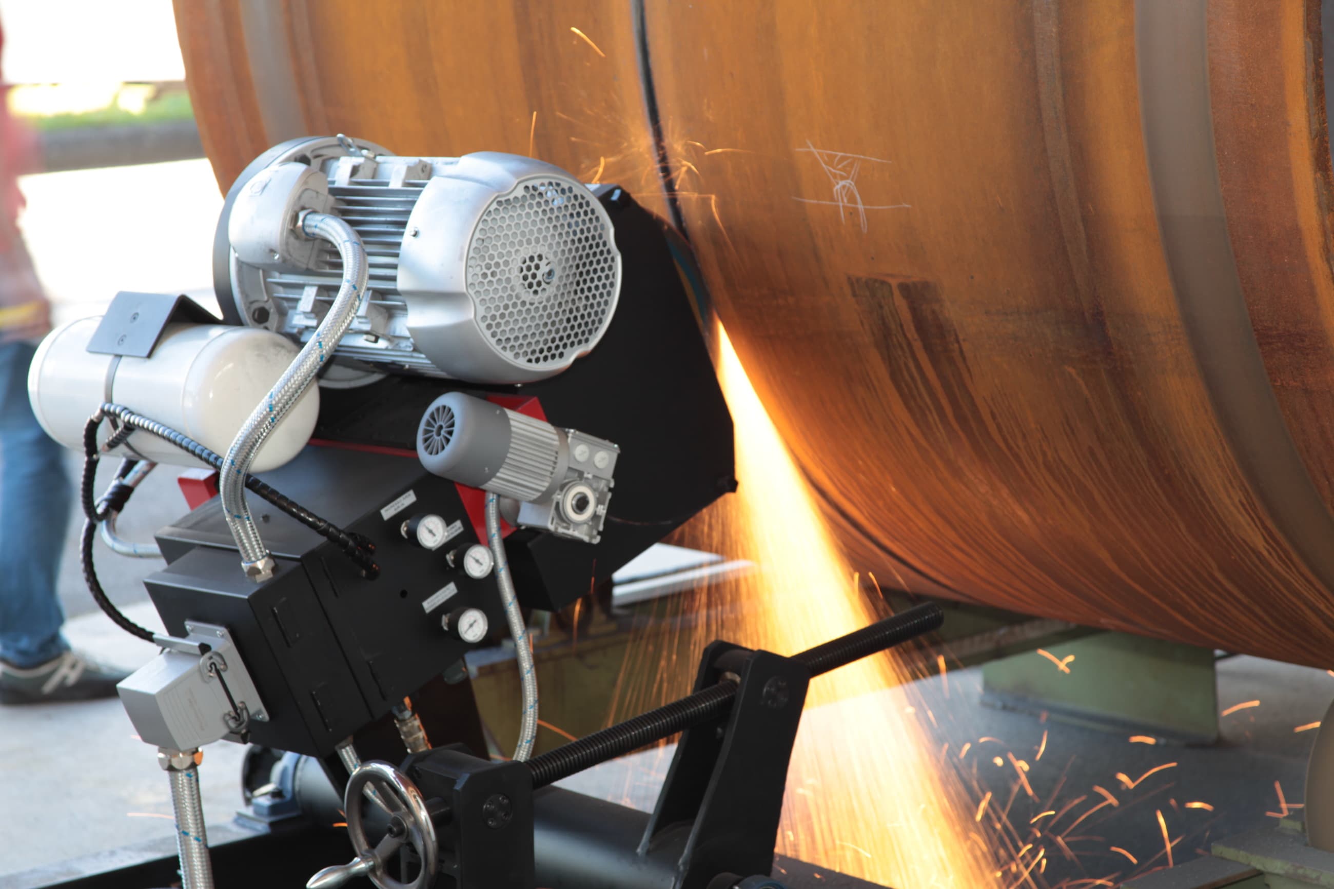 Die GREDGER Back-Gouging-Schleifmaschine ermöglicht präzises Schweißnahtausfugen und reinigt den Schweißbereich ohne die gefährlichen, toxischen Dämpfe, die bei anderen Verfahren häufig entstehen. Gleichzeitig reduziert sie die körperliche Belastung des Bedieners im Vergleich zum manuellen Schleifen erheblich und steigert die Produktivität deutlich.