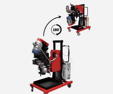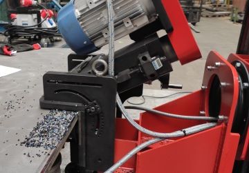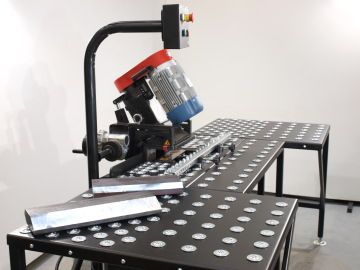 Die gesamte Fräseinheit lässt sich ohne Materialmanipulation drehen – ideal für X- und K-Fasen. Der Fasenwinkel ist durch Neigen der Einheit im Bereich von 0°–90° einstellbar. Ebenfalls geeignet für Planfräsen, Stirnseitenbearbeitung und J-Fasen bis 30°.